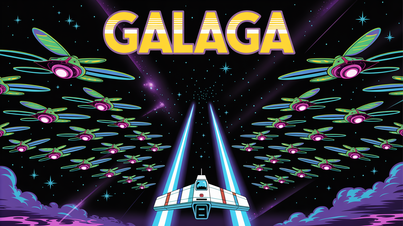 Galaga, uzayın derinliklerinden gelen saldırı dalgalarına karşı verilen amansız bir savunma savaşını konu alır. Küçük ama çevik savaş geminizle, düşman böcek filolarını yok etmeye çalışırken gökyüzü bir anda mermi, manevra ve tehditlerle dolar.